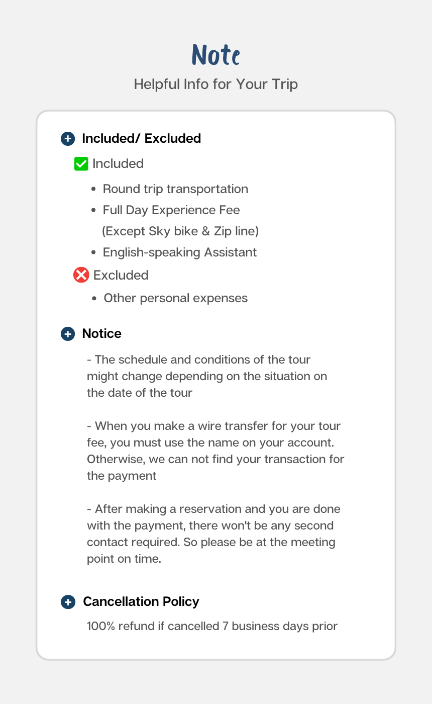 Optional : Sky bike : 29,000won / Zipline : 20,000won