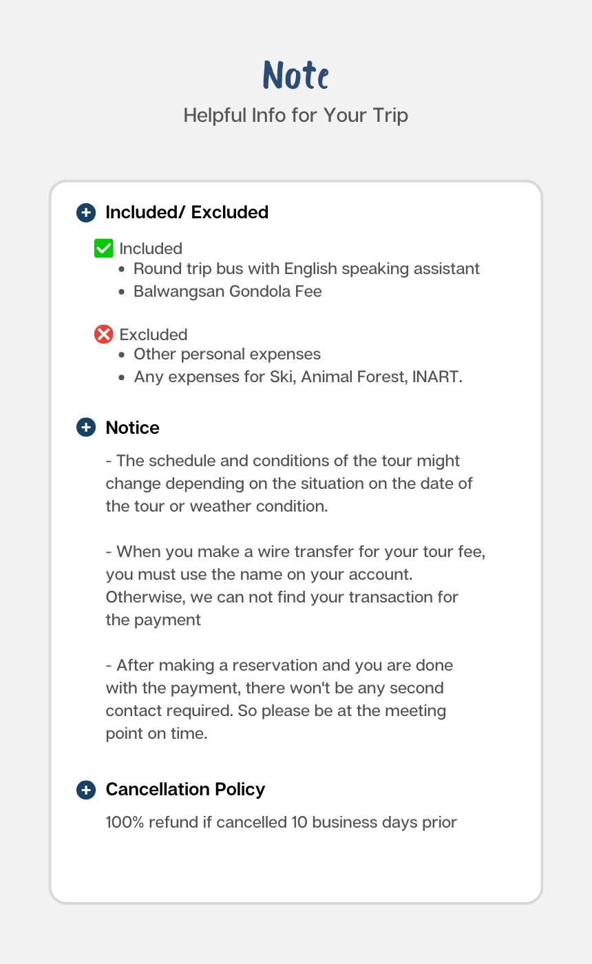 ※ If the SKI Resort's opening is delayed, the tour date may be subject to change.