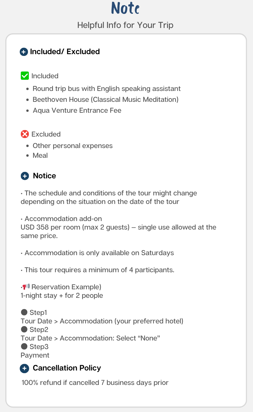 🔷 Option> The Week & Resort 1 Night : 358USD / 429,600KRW