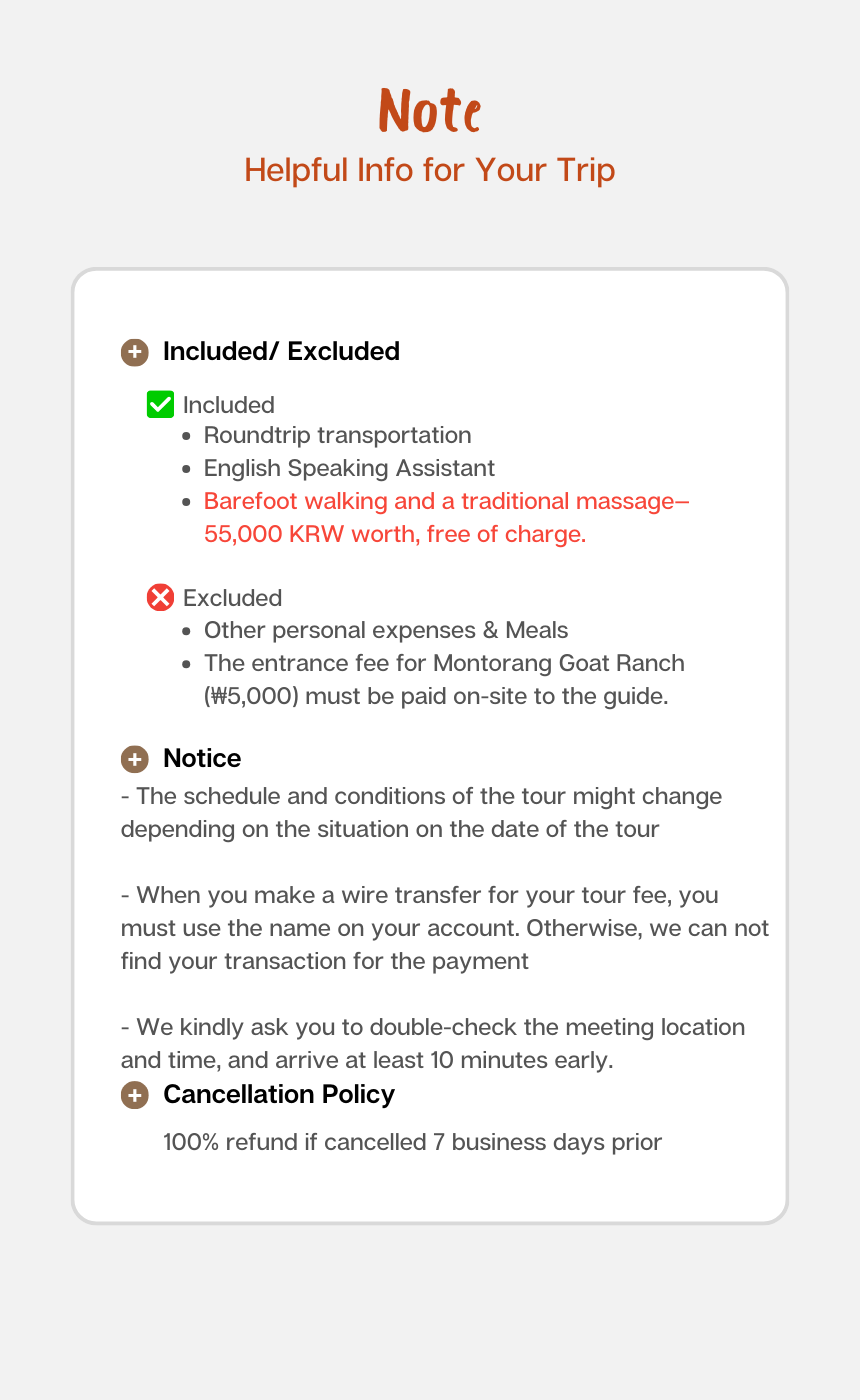 - Barefoot walking and a traditional massage—55,000 KRW worth, free of charge.